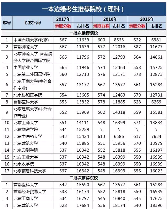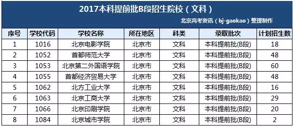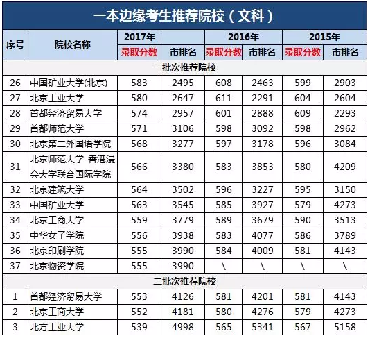 2017年北京批次线