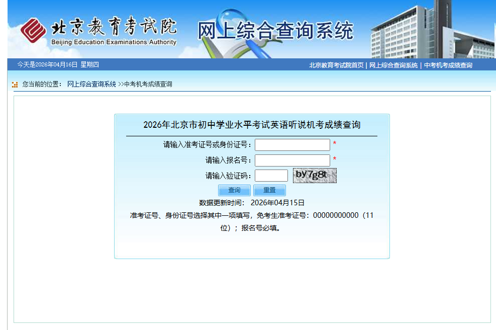 2026北京中考英语科目听力口语考试第二次考试于2026年3月22日进行,考试已经结束,考生可以在4月16日12点进行成绩查询。北京高考在线团队整理了2026北京初中学考第二次英语听说考成绩查询入口,方便考生查询: