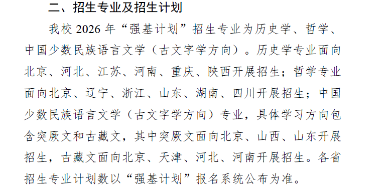 中央民族大学2026年强基计划招生专业及招生范围有哪些?