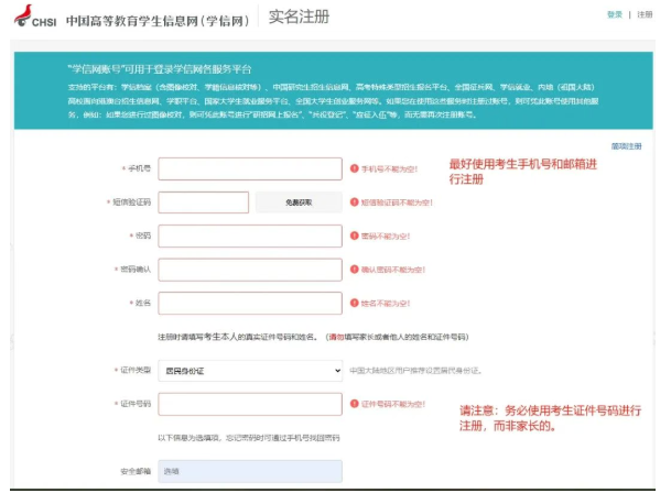 按照提示填写信息。(考生本人真实姓名和证件号码)
