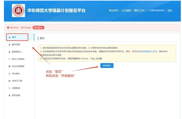 进入报名系统,阅读首页须知后,点击“开始报名”。