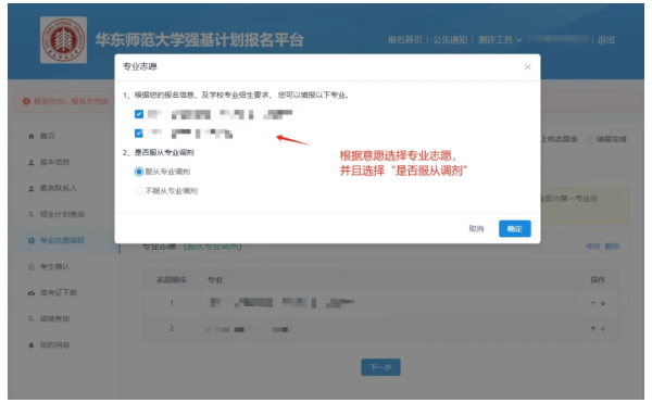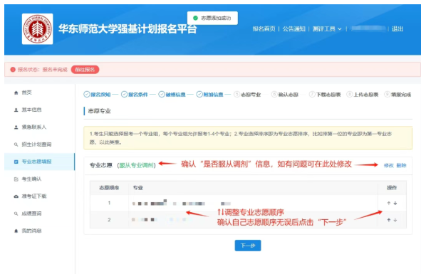 正式提交前,考生需确认“是否服从调剂”信息无误,考生可对专业志愿进行排序、修改或删除。