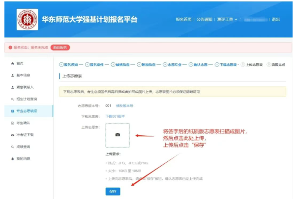 志愿表经考生本人签字后,上传志愿表签字版JPG图片(pdf无法上传),保存。