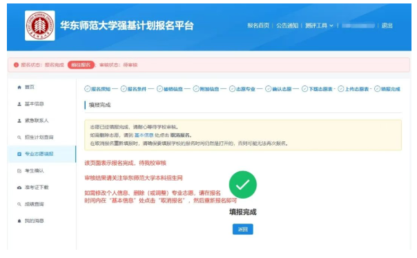 如需删除志愿(或取消报名),可至“基本信息”处点击“取消报名”,然后重新报名;重新报名时,请确认意愿高校的报名截止时间,如报名已截止则无法再次报名。